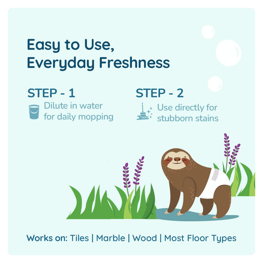 This plant-based floor cleaner is formulated using bio-enzymes and coconut-derived surfactants for regular household floor cleaning. The formulation avoids harsh chemicals, strong fumes, and aggressive disinfectants, focusing instead on gentle removal of dirt, grime, and everyday floor residue.