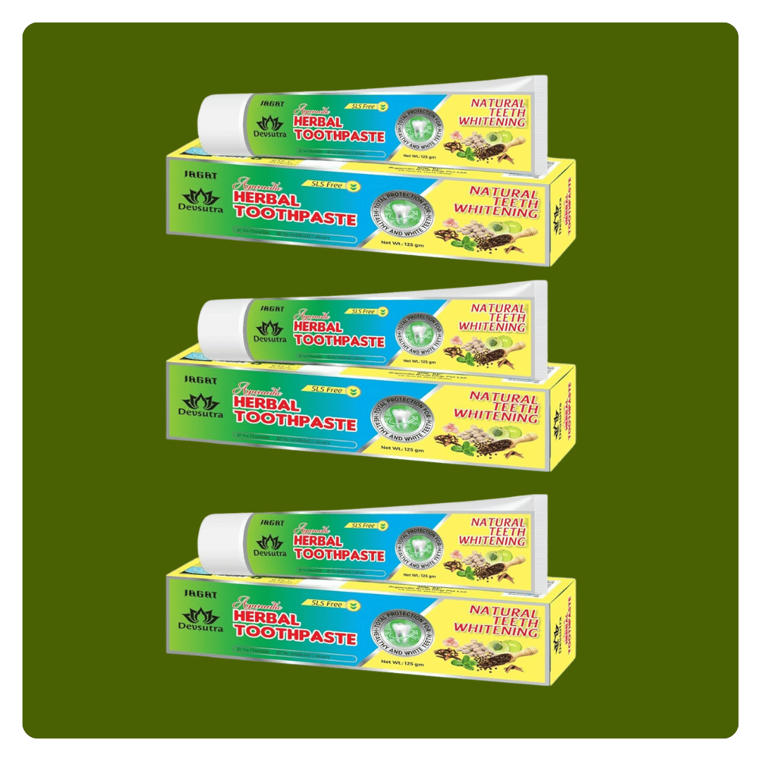 Jagat Devsutra Herbal Mint Toothpaste – Fluoride-Free Oral Care (Pack of 3, 125g Each)