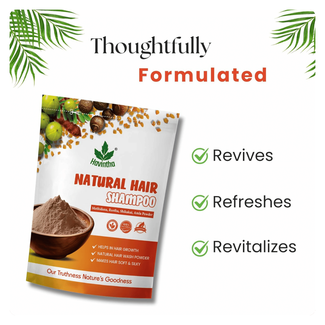 This Herbal Shampoo Powder is a 100% natural, Ayurvedic hair cleanser made with a traditional blend of amla, reetha, shikakai, and methi dana. Finely ground using modern techniques, the powder retains the natural potency of herbs that help cleanse the scalp, nourish hair roots, and support overall hair health. It is suitable for normal, dry, and oily hair types, making it a versatile choice for men and women.