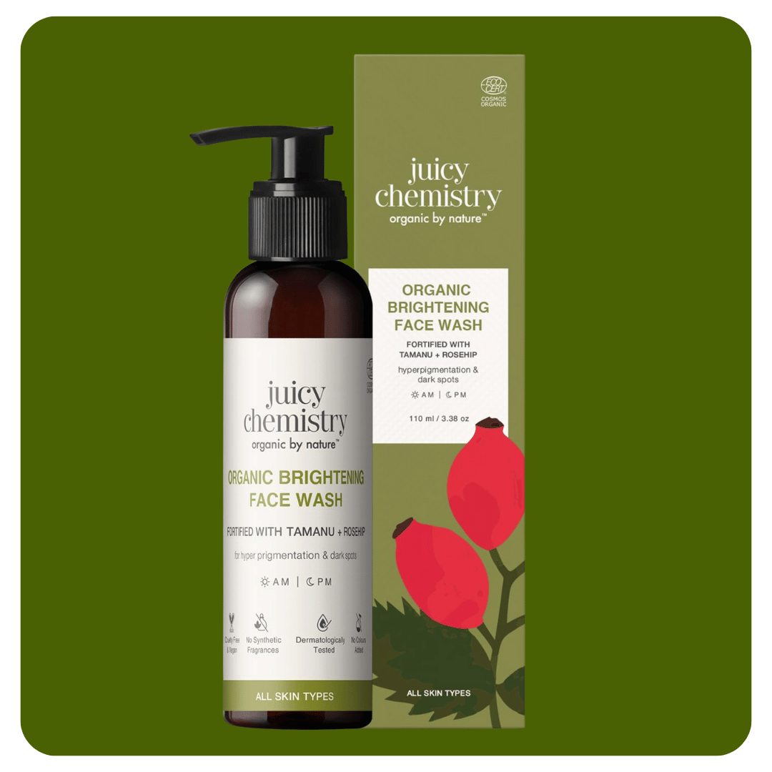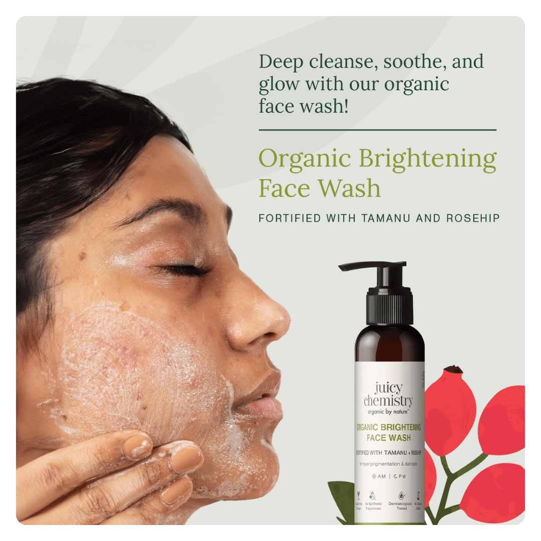 Juicy Chemistry Tamanu & Kakadu Plum Face Wash is a certified organic and clinically tested formula designed to brighten dull and pigmented skin.