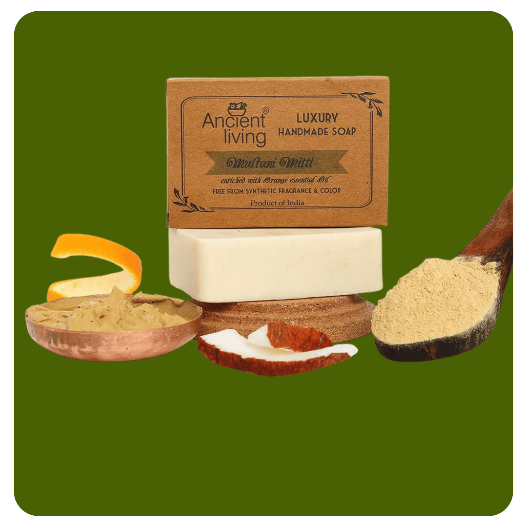 Ancient Living Multani Mitti Handmade Soap – Deep Cleansing & Natural Facial Scrub (100g × 2 | Oily & Combination Skin)