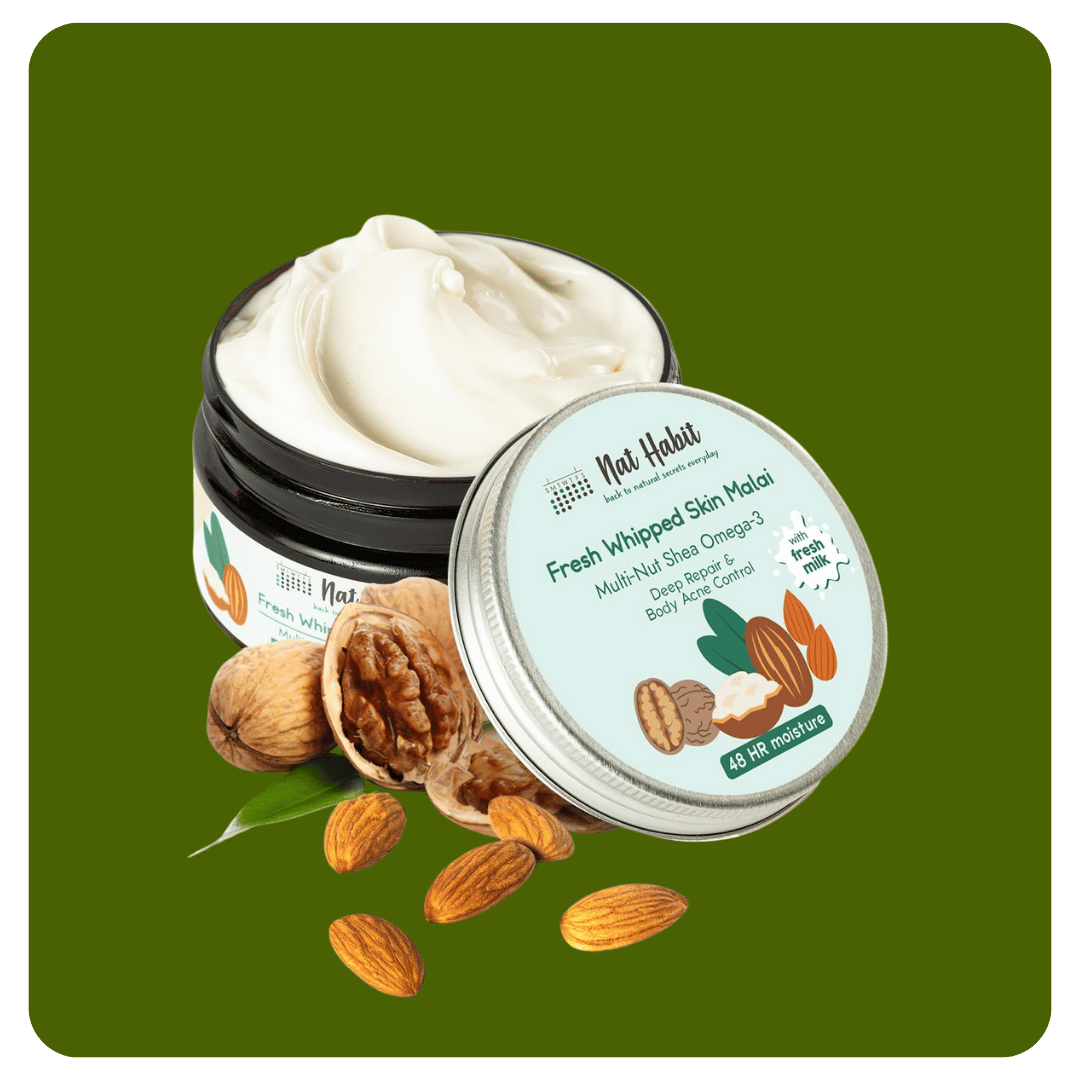 Nat Habit Multi-Nut Omega-3 Moisturiser – Skin Malai Body Cream for 48H Hydration & Skin Repair (120ml)
