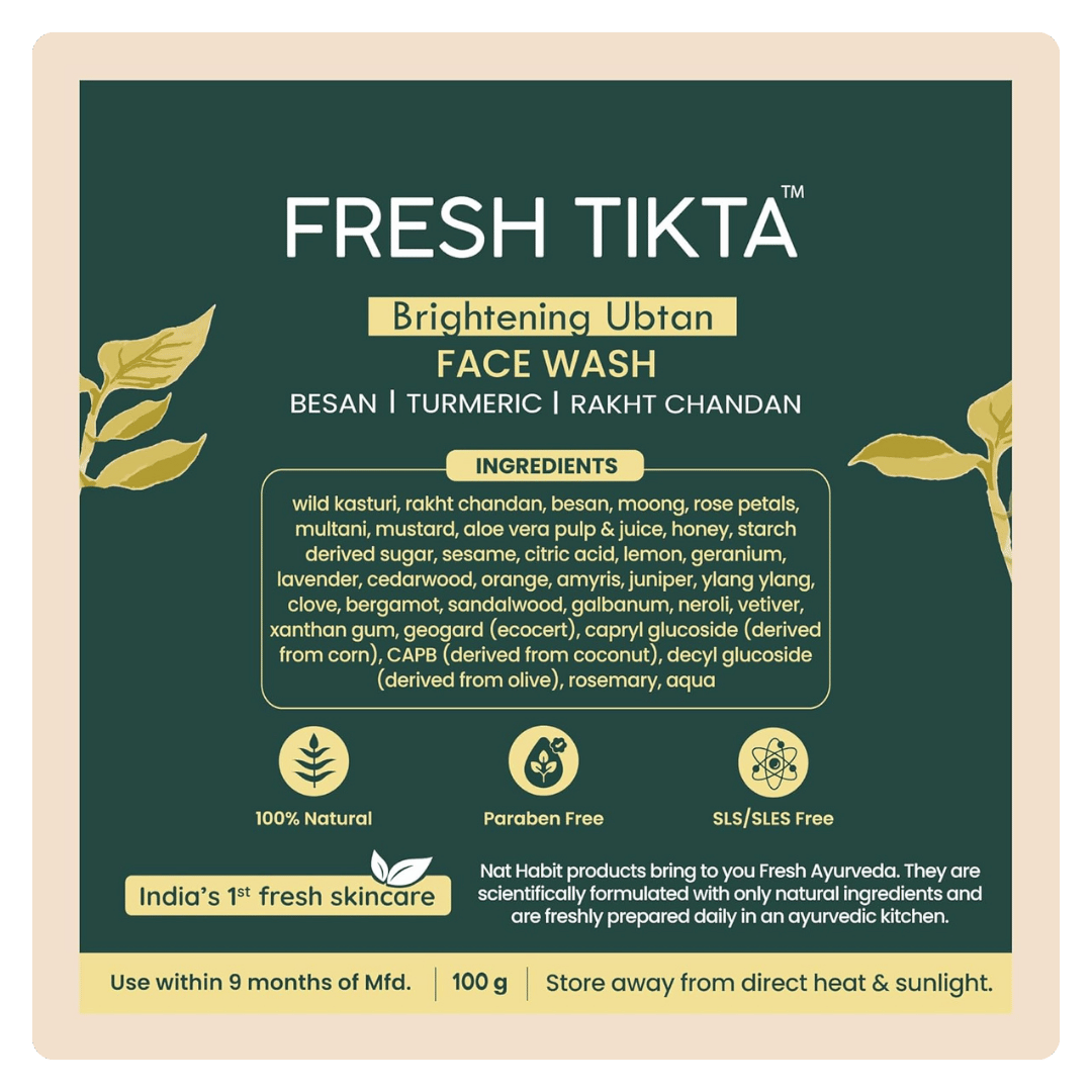 Nat Habit Ubtan Face Wash | Fresh Daily Tikta | Wild Turmeric | Brightening & Chemical-Free (100g)