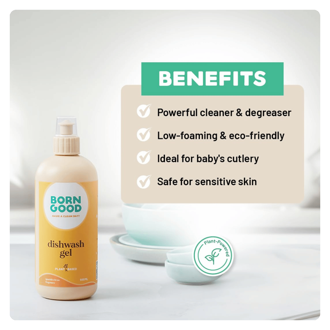 Born Good Natural Dishwash Liquid – Citrus Based, Mild & Low-Residue Formula