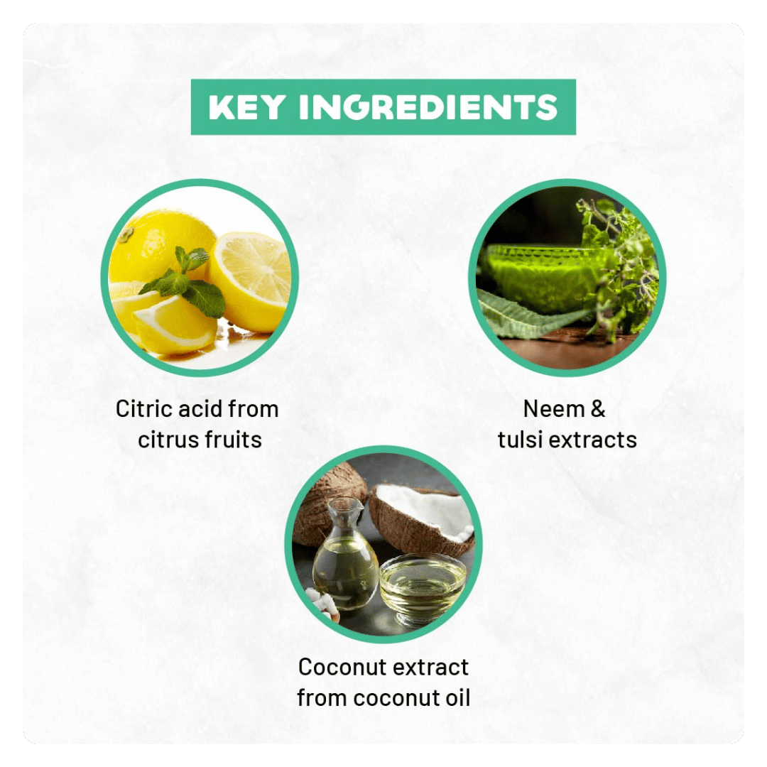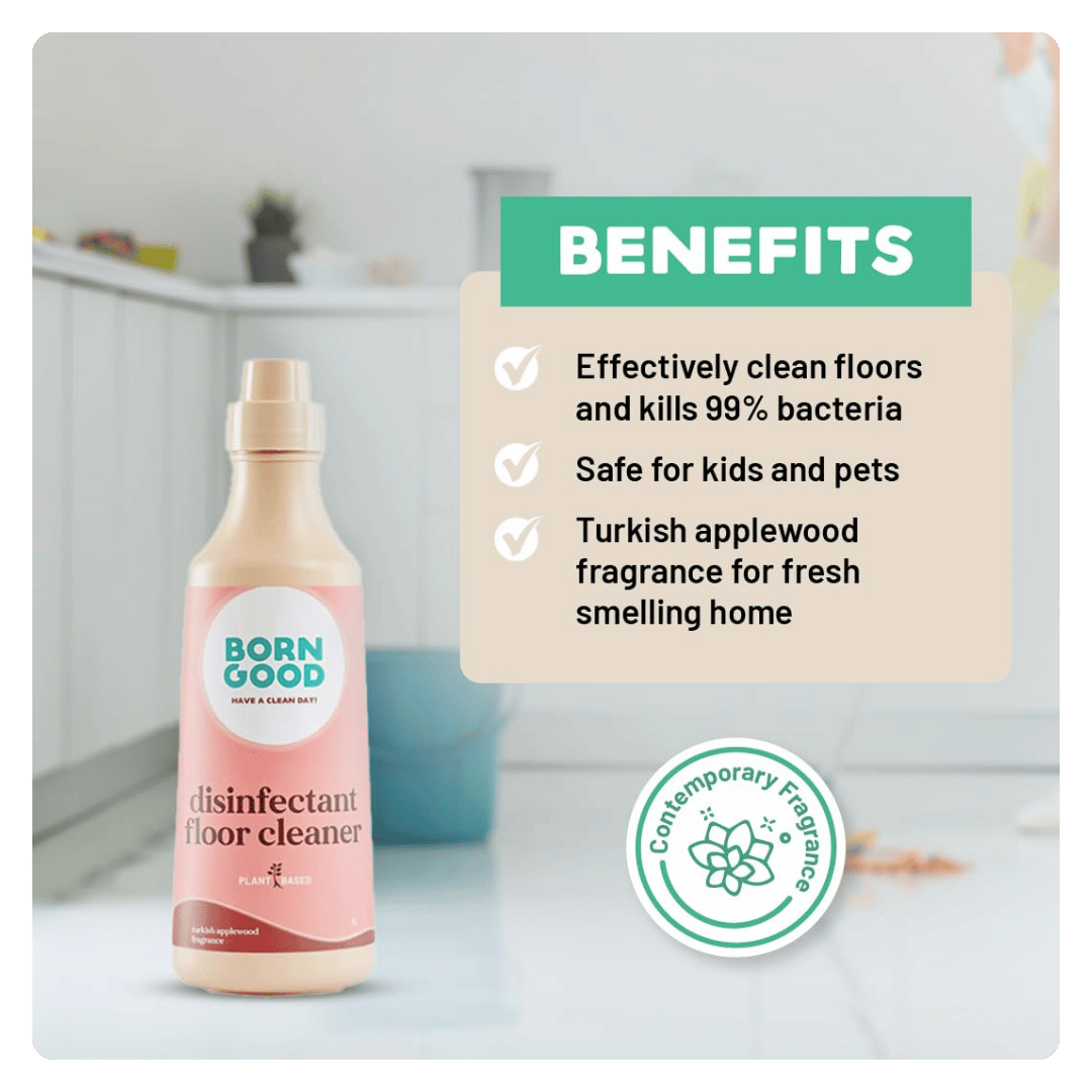 This plant-based floor and surface cleaner is formulated using biodegradable ingredients derived from coconut, sugarcane, and citrus extracts. The formulation avoids harsh chemicals such as chlorine, ammonia, bleach, and strong disinfectants, making it more suitable for regular household floor cleaning.