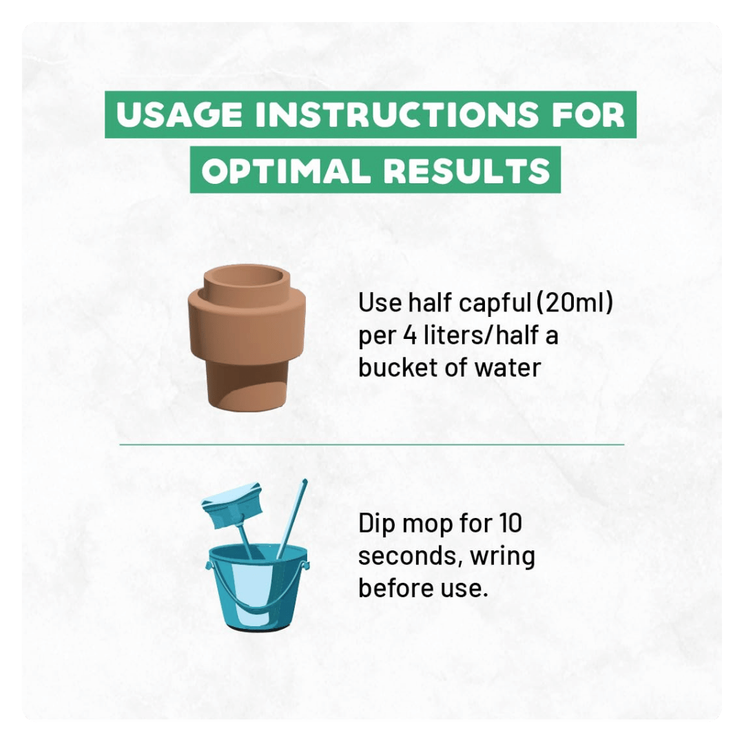This product is designed for routine floor maintenance and hygiene rather than aggressive or industrial-grade cleaning. For heavily soiled areas, repeated mopping or longer contact time may be required.
