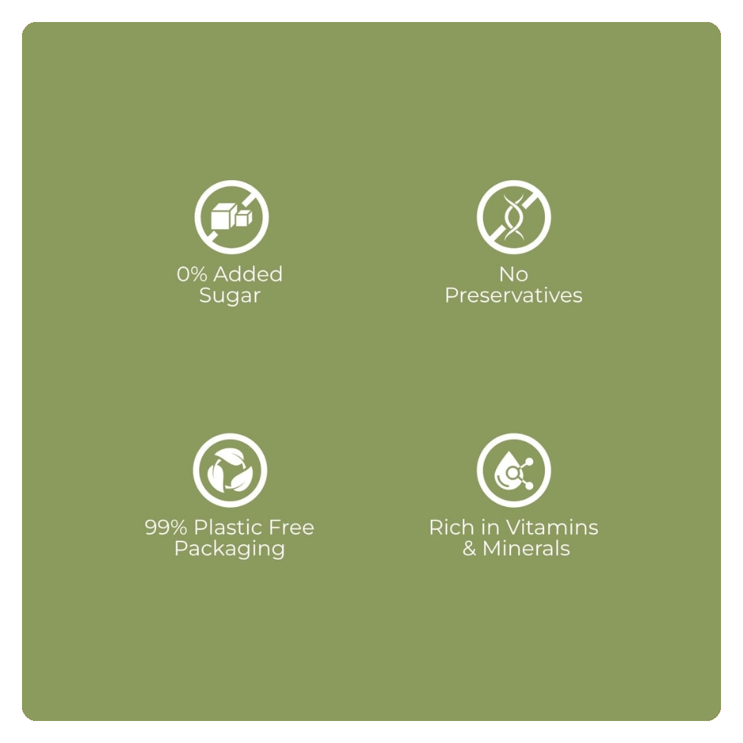 • Refined sugar–free, sweetened naturally with dates