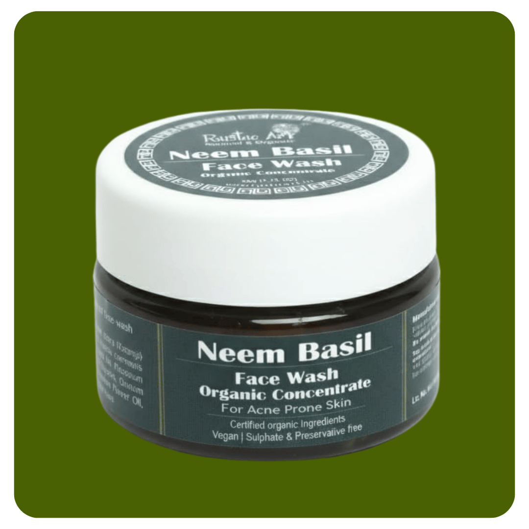 Rustic Art Neem Basil Face Wash Concentrate | For Acne & Oily Skin | Organic, Sulphate & Paraben-Free (50g)Rustic Art Neem Basil Face Wash Concentrate | For Acne & Oily Skin | Organic, Sulphate & Paraben-Free (50g)